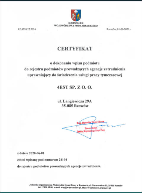 4EST SP. Z O.O. jest polską firmą z siedzibą w Rzeszowie