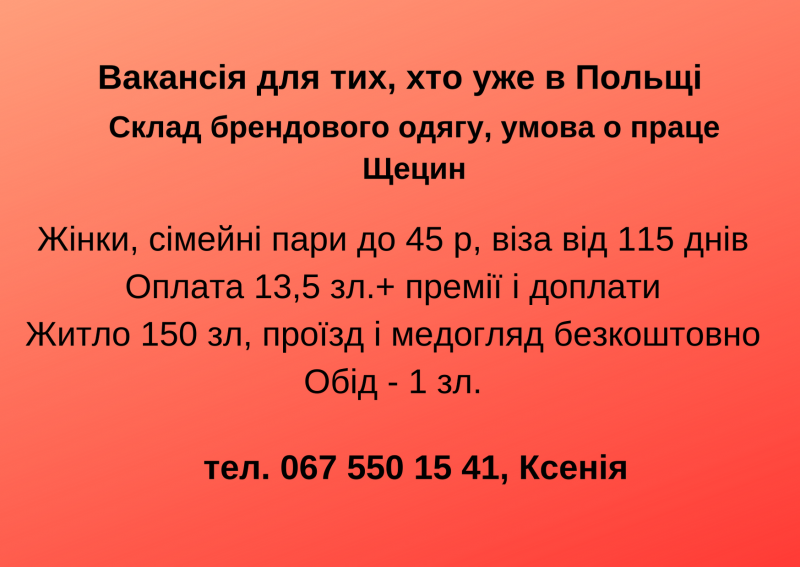 Робота для людей, які знаходяться в Польщі!